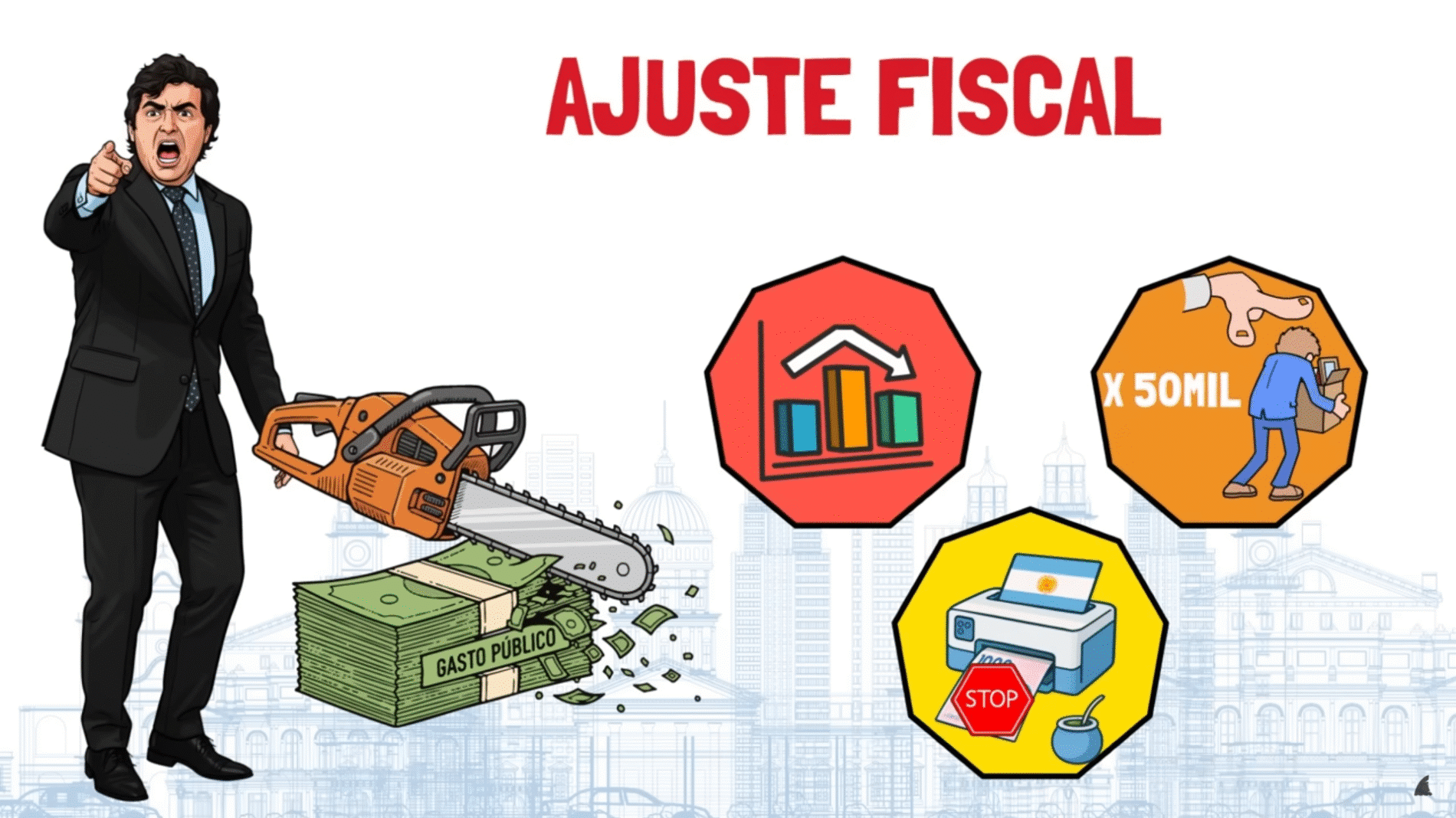 Al asumir en diciembre de 2023, Milei se encontró un país al borde del colapso. Tal como prometió, aplicó una terapia de shock liberal en tiempo récord. ¿Y eso qué significa? Pues que aplicó un ajuste fiscal impresionante, es decir, que optó porque el Estado gastase muchísimo menos. Y así fue: Milei sacó la motosierra y recortó gasto público en todas las áreas posibles, llegando a despedir a 50.000 empleados públicos en cuestión de meses.