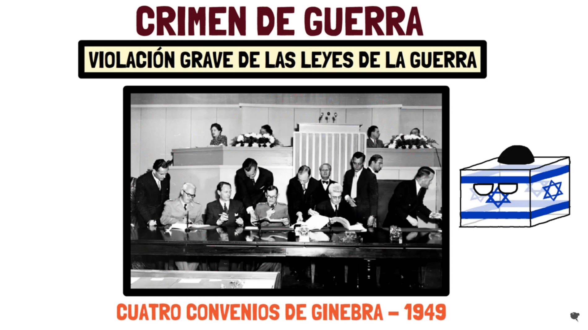 Comencemos por el crimen de guerra. Un crimen de guerra es una violación grave de las leyes de la guerra. ¿Y cuáles son las leyes de la guerra? Pues principalmente están en los cuatro Convenios de Ginebra, de los cuales Israel es parte. Ejemplos de crímenes de guerra pueden ser bombardear un hospital sabiendo que es un hospital, ejecutar prisioneros de guerra, usar armas químicas contra civiles, en fin, ese tipo de cosas.