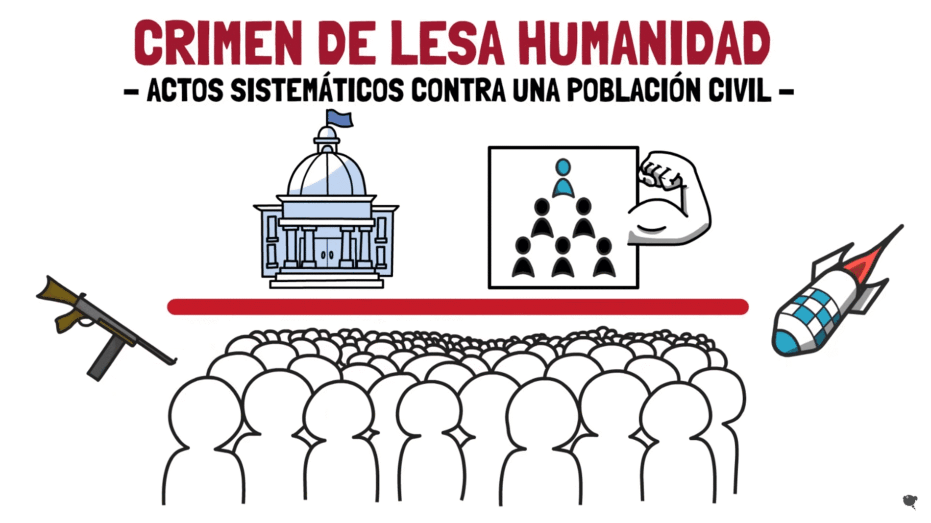 Por su parte, para que se dé un crimen de lesa humanidad, ya no hace falta que haya guerra. Son actos sistemáticos o generalizados contra una población civil, normalmente desde el poder del Estado u organizaciones con mucho control. Ejemplos aquí son una dictadura que practica desapariciones forzadas, torturas masivas, esclavitud o deportaciones. La clave aquí es que tiene que ser sistemático o generalizado y dirigido contra civiles. La motivación puede ser política, étnica o religiosa, pero no necesariamente busca exterminar al contrario.