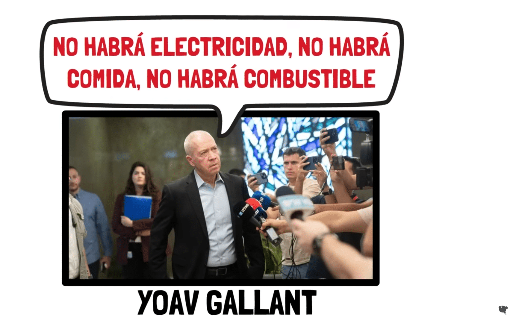 Puede deducirse de conductas y de las palabras de los dirigentes políticos y militares. En el caso de Gaza hay que citar las palabras del ministro de Defensa israelí, Yoav Gallant, el cual anunció un asedio total sobre la Franja. Específicamente dijo: “No habrá electricidad, no habrá comida, no habrá combustible.” Esa frase no describe solo un bloqueo militar, sino la privación absoluta de recursos vitales a 2 millones de personas, lo cual es interpretado como un indicio de intención de infligir condiciones incompatibles con la vida.