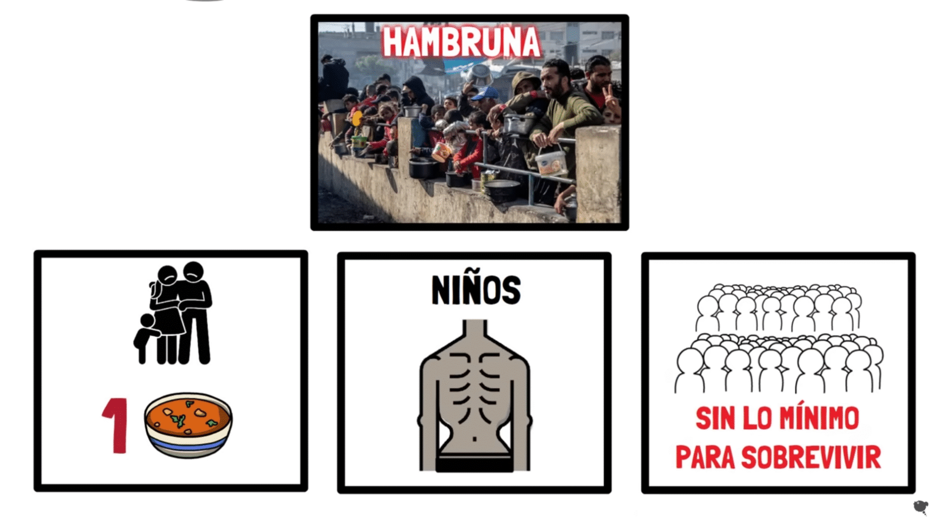 Y es que, por último, tenemos que hablar de la hambruna a la que Gaza está siendo sometida. Una hambruna que se volvió insoportable cuando Israel tomó el paso de Rafáh y redujo al mínimo la ayuda humanitaria que podía entrar en la Franja de Gaza. Human Rights Watch y Amnistía Internacional denunciaron explícitamente el uso del hambre como arma. Unas denuncias que se han ido reforzando con informes técnicos de organismos especializados. En 2025, el sistema de clasificación integrada de la seguridad alimentaria, respaldado por la ONU y la OMS, confirmó que partes de Gaza ya estaban en situación de hambruna, con ejemplos como familias reducidas a una comida cada varios días, niños con desnutrición aguda y una población entera sin acceso a lo mínimo para sobrevivir.