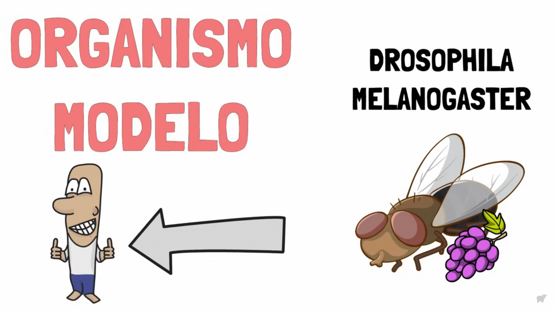 Esta pequeña mosca de aquí es Drosophila melanogaster, también conocida como mosca del vinagre o de la fruta. Es un animal clave para muchas investigaciones, ya que durante más de un siglo los científicos la han usado como organismo modelo. Es decir, los investigadores estudian esta mosca para comprender principios biológicos que luego van a aplicarse a otros seres vivos.