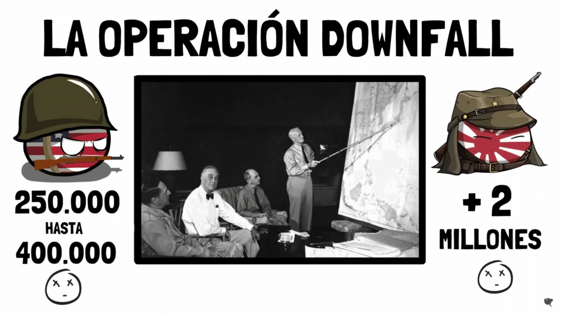 1. El primero de ellos era la preparación de EE.UU. para la Operación Downfall, la invasión del archipiélago japonés. Los cálculos eran aterradores: se estimaban desde 250.000 hasta 400.00 bajas estadounidenses, y más de 2 millones de soldados japoneses entre civiles y militares. Ya sabéis que las cifras hay que cogerlas con pinzas y más si son estimaciones.